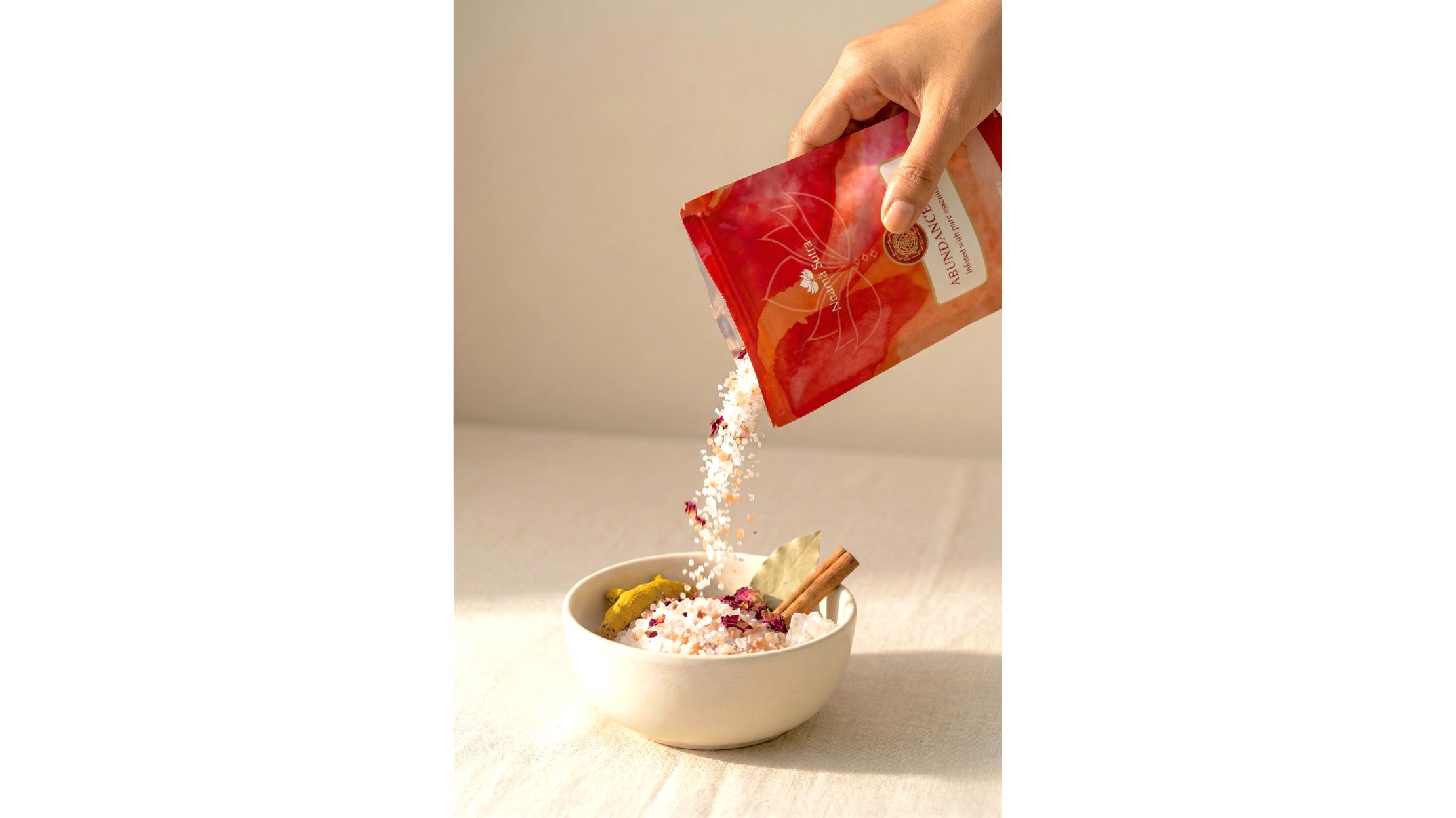 Sea salt and Himalayan salt crystals infused with a proprietary blend of pure essential oils. The fragrance of this Abundance blend carries a living frequency, crafted with intention to open your flow, elevate your vibration and attract prosperity in all its forms.