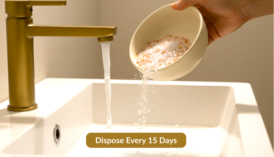 Avoid flushing the salt or reusing it in any way. Disposing the salt in water helps complete the ritual cycle and refresh the space for a new sensory reset.