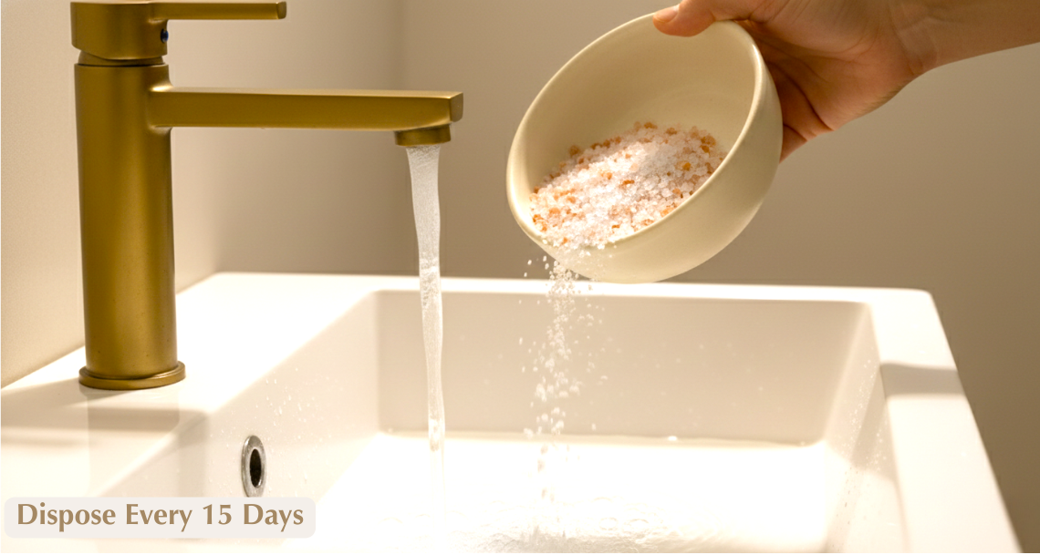 Avoid flushing the salt or reusing it in any way. Disposing the salt in water helps complete the ritual cycle and refresh the space for a new sensory reset.